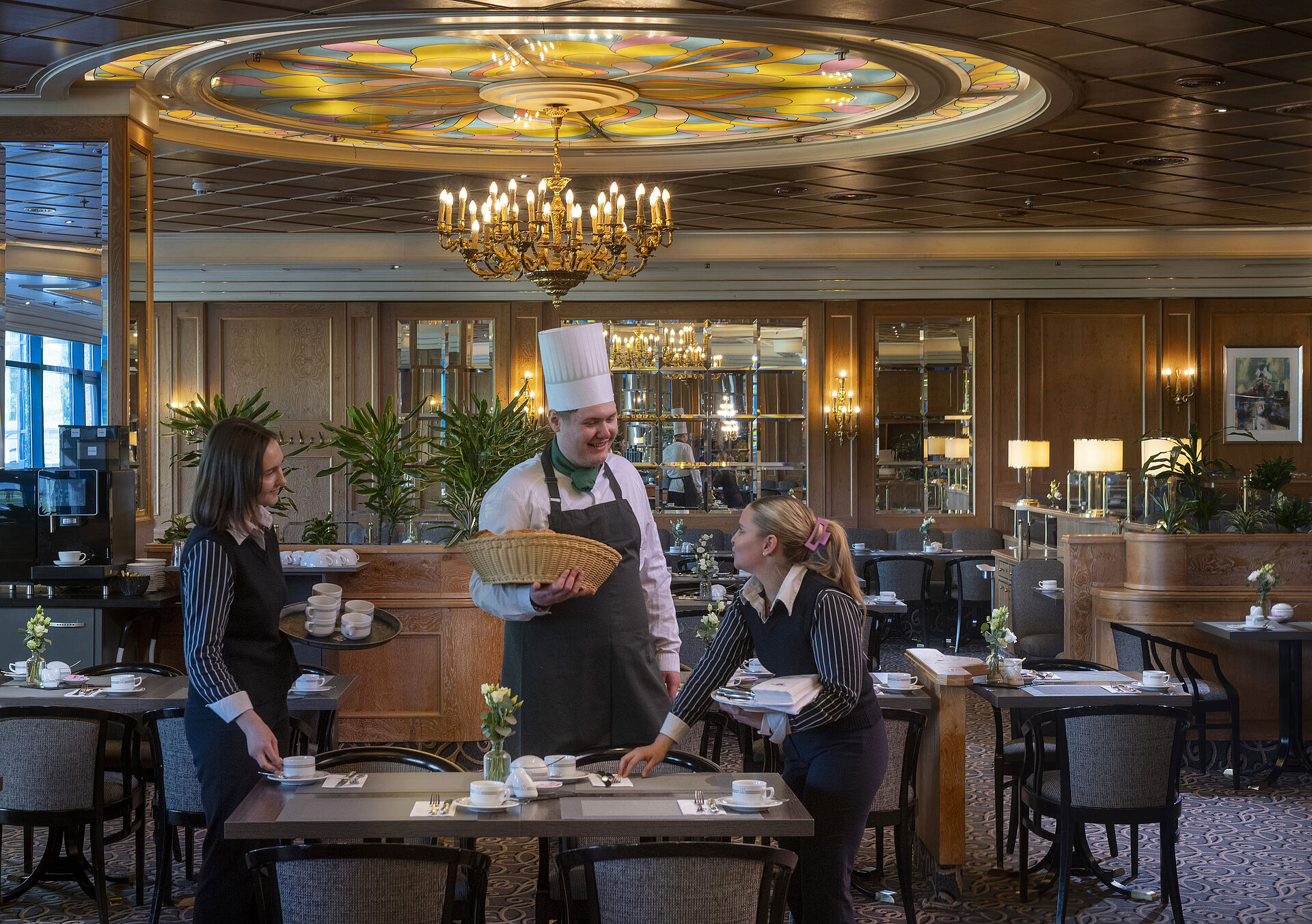 We welcome you with a "Herzlich willkommen" in our buffet restaurant "Rôtisserie". Here, the extensive Maritim breakfast buffet – including coffee, tea, and various juices – is available daily for a perfect start to your day.