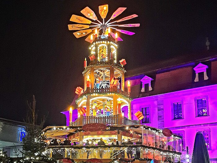 Year for year, Christmas is always special: Fulda city centre is aglow with Christmas illuminations. Chalets bedecked in the Christmas fashion adorn the Universitätsplatz, Museumshof and Borgiasplatz. The scent of mulled wine, toasted almonds and Lebkuchen (gingerbread) fills the air.