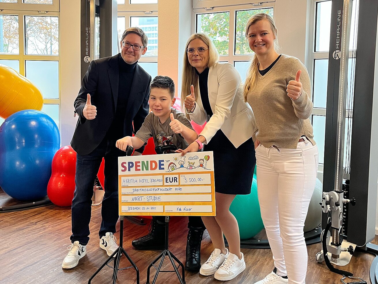 With a donation for the purchase of a “spider cage,” a therapeutic device designed to strengthen specific weakened muscle groups, we are supporting the NART study by Action to Help Children in Bremen. NART stands for “neuroactive reflex therapy” and is a therapy concept for children and adolescents with motor movement restrictions due to early childhood brain damage, injuries to the peripheral nervous system, traumatic brain injuries, spastic paralysis, or severe scoliosis.