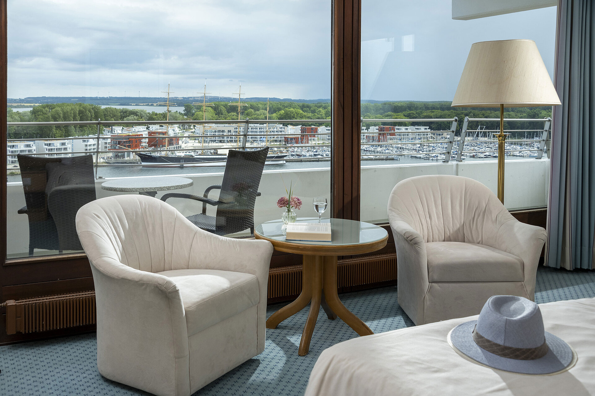 All 232 rooms are bright, spacious and feature a private balcony – perfect conditions for a restful seaside stay. Let yourself be inspired by the maritime hustle and bustle as large freighters and elegant cruise ships pass through the Trave estuary. A particular highlight: our restaurant with sea view, where you can enjoy regional and international cuisine in an elegant setting.
