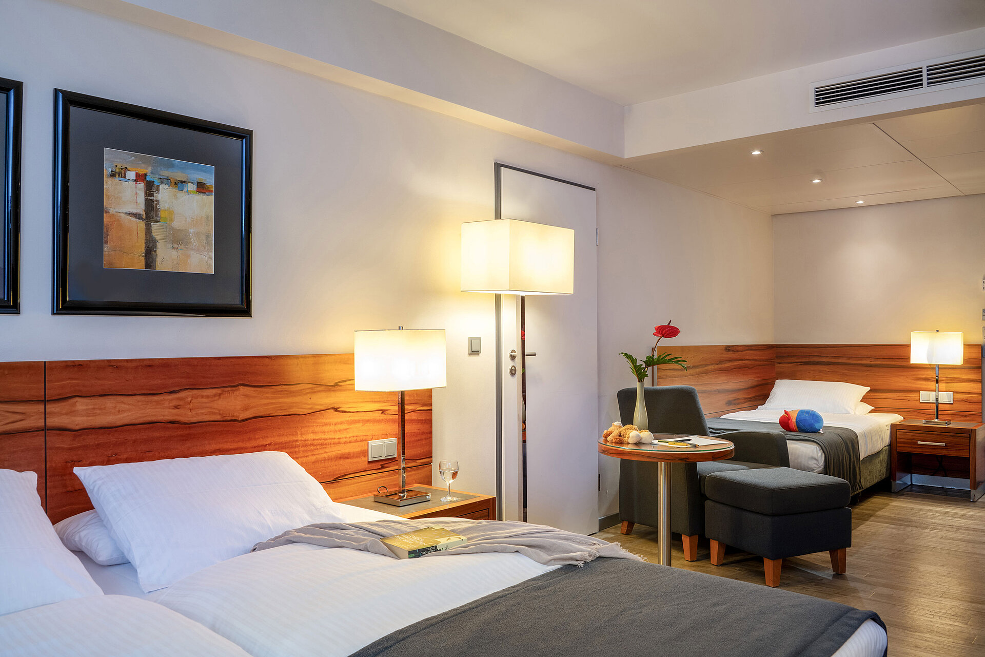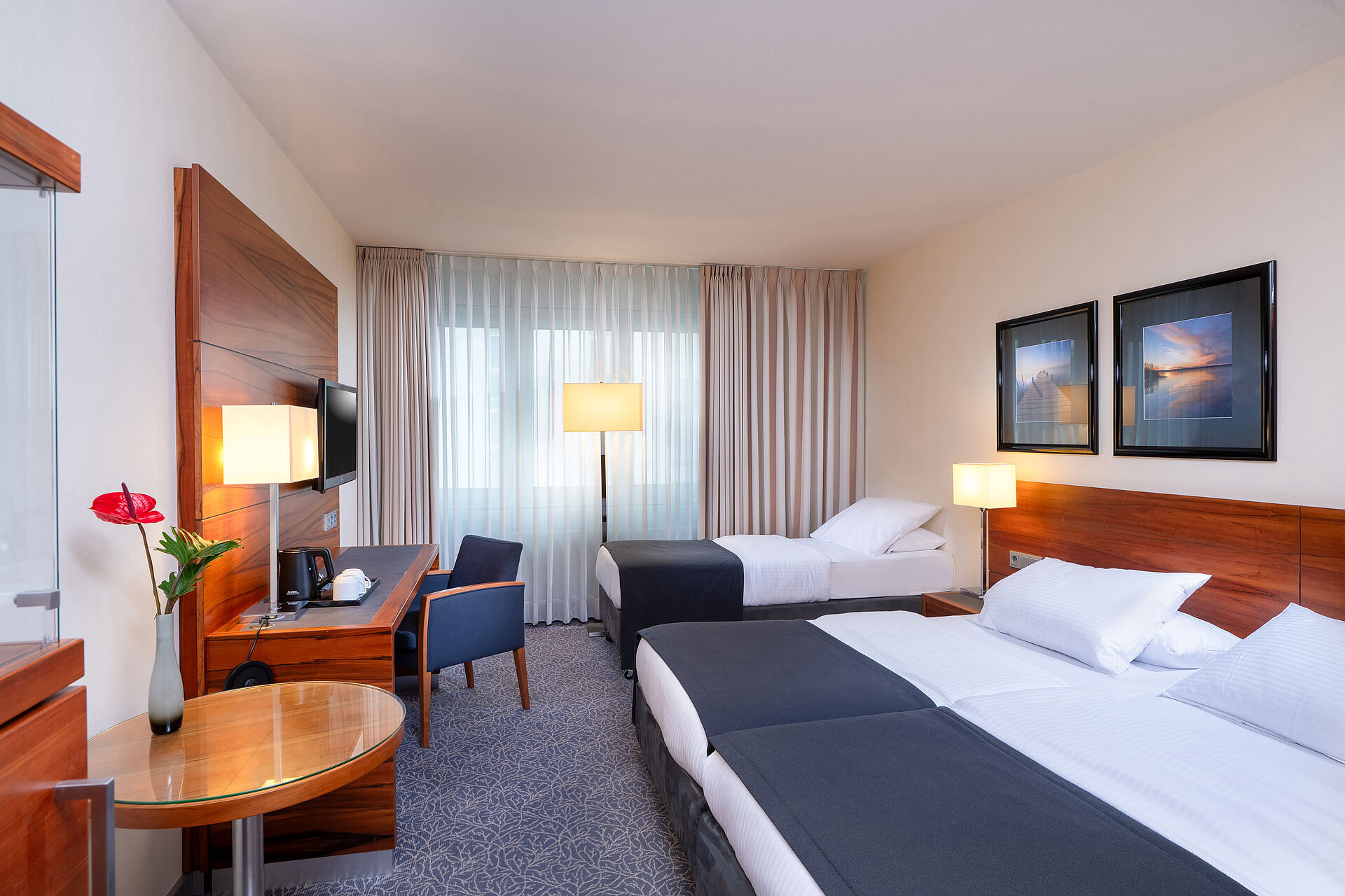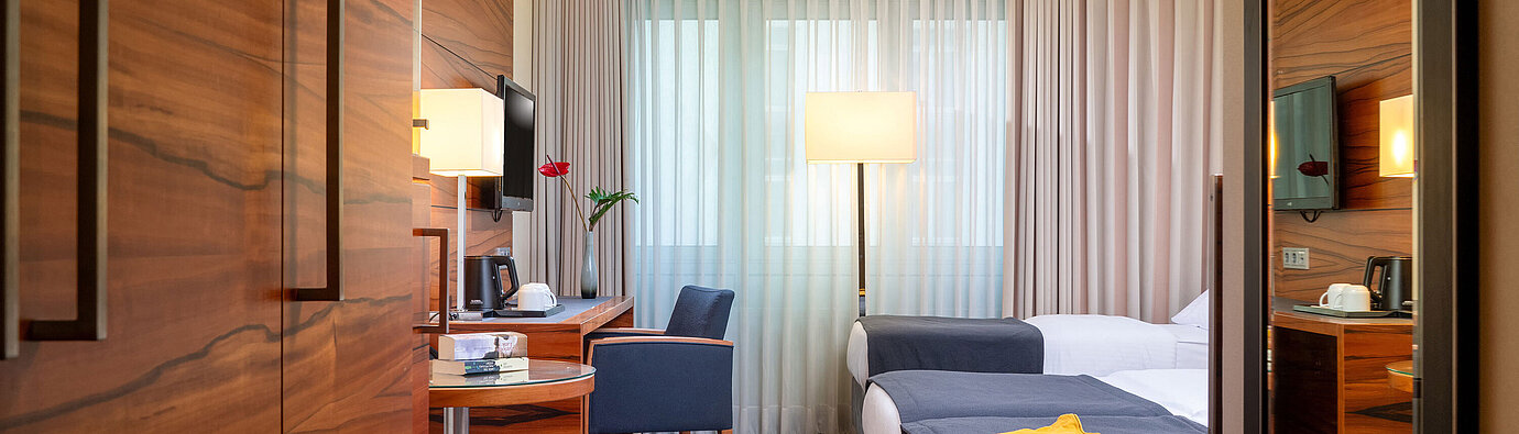 Soyez notre hôte dans la "ville mondiale au grand cœur". Une visite de Munich, la capitale de la Bavière, vaut toujours la peine et donc aussi une nuit au Maritim Hotel München. Notre hôtel est particulièrement bien situé, car la gare centrale de Munich n'est qu'à 200 mètres et les transports en commun sont encore plus proches. Vous préférez vous déplacer à pied ? Cela tombe bien, le Stachus de Munich et la Theresienwiese se trouvent à proximité immédiate de l'hôtel - de là, vous pouvez commencer votre visite touristique du centre-ville, visiter l'un des nombreux Biergärten ou célébrer l'Oktoberfest. Mais ne vous inquiétez pas, même si le Maritim Hotel München est si proche de la vie trépidante, il reste calme grâce à sa cour intérieure.