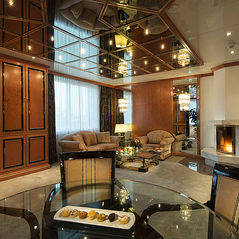 L'esclusività unica di questa suite trasforma rapidamente l'hotel in una "casa lontano da casa" a Stoccarda. La zona giorno con soffitti a specchio aggiunge quel qualcosa in più e il camino elettrico, presente in due suite di questa categoria, promette ore accoglienti per due.