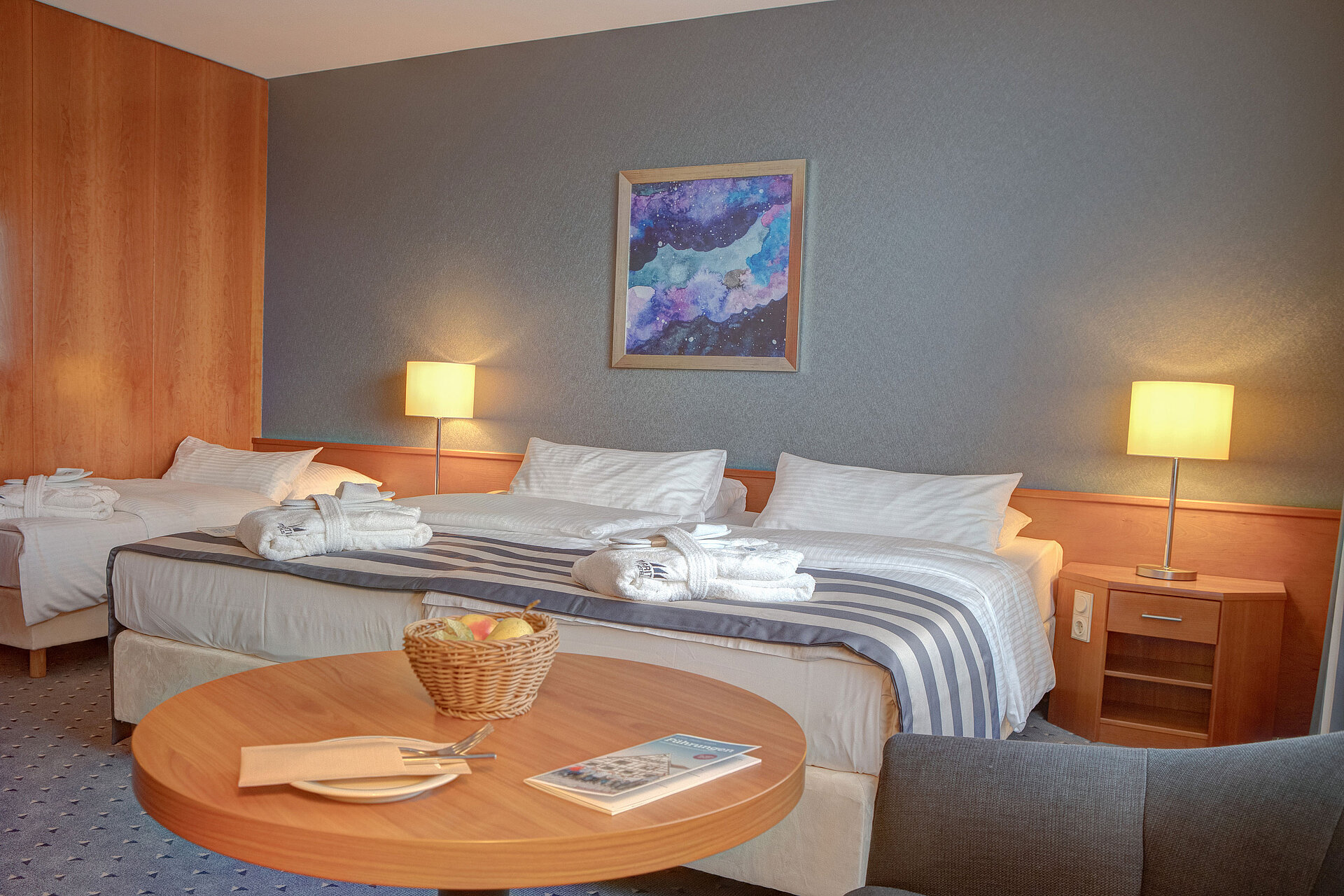 Per un soggiorno particolarmente tranquillo, Le offriamo suite con zona giorno e zona notte separate – un’offerta unica a Ulm. Anche le altre camere offrono un alloggio moderno e confortevole. I toni eleganti del beige e dell’antracite, i letti a molle e gli arredi di alta qualità garantiscono un comfort di prima classe.