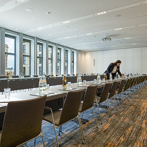 La "Saal Ingolstadt" (Sala Ingolstadt) è il fiore all'occhiello tra le 13 sale del Congress Centrum Ingolstadt. La sala multifunzionale con galleria è unica nel suo genere con la sua superficie totale di circa 1.100 mq e offre spazio per eventi fino a 1.300 persone. Oltre alla luce del giorno e a un imponente palcoscenico di 180 mq, la sala offre anche un innovativo concetto di luce e suono. Con questa sala, ogni evento, sia esso un evento aziendale, un concerto o una festosa cena di gala, diventa un'esperienza indimenticabile.